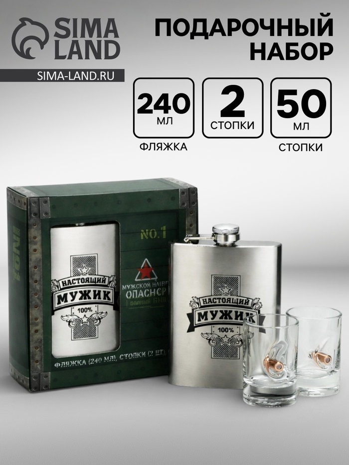 Подарочный набор «Настоящий мужик», стопки непробиваемые с пулей 2 шт.×50 мл, фляжка 240 мл. - товар, который Вы можете приобрести в нашем интернет-магазине. Заказ могут оформить как юридические, так и физические лица. Бесплатная доставка по Астане, также, отправляем по РК.