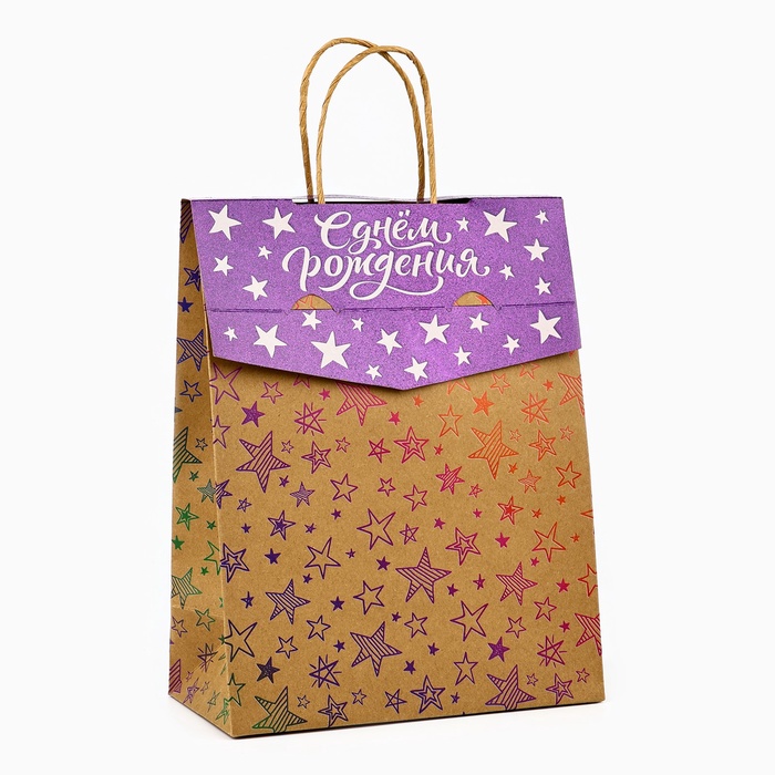 Пакет с клапаном «С Днём рождения», звезды, крафт, глиттер, 19,5 × 10 × 25.2 см - товар, который Вы можете приобрести в нашем интернет-магазине. Заказ могут оформить как юридические, так и физические лица. Бесплатная доставка по Астане, также, отправляем по РК.