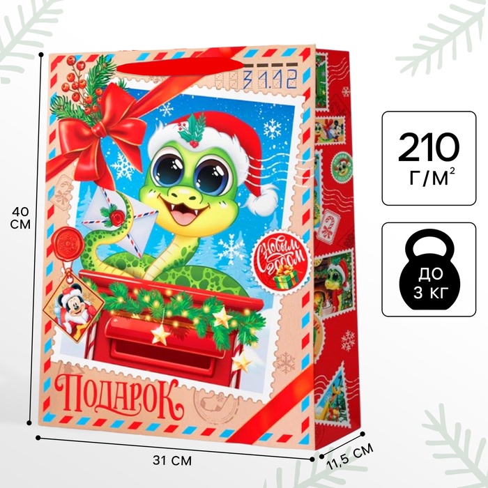 Пакет подарочный новогодний «Символ года 2025. Змея» 31 х 40 х 11.5 см, упаковка, Микки Маус - товар, который Вы можете приобрести в нашем интернет-магазине. Заказ могут оформить как юридические, так и физические лица. Бесплатная доставка по Астане, также, отправляем по РК.