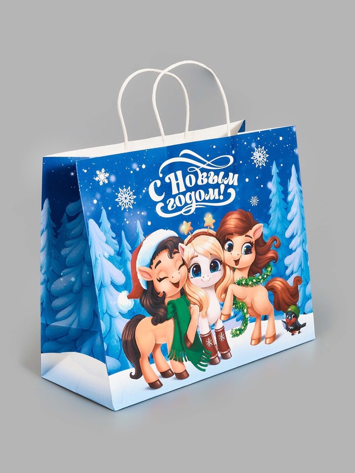 Пакет подарочный новогодний «Лошадки 2026», белый крафт, 32×28×15 см - товар, который Вы можете приобрести в нашем интернет-магазине. Заказ могут оформить как юридические, так и физические лица. Бесплатная доставка по Астане, также, отправляем по РК.