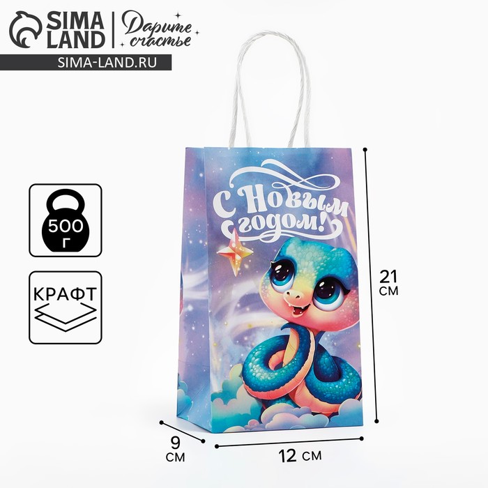 Пакет подарочный новогодний «Сказочный», змея, белый крафт, 12 х 21 х 9 см - товар, который Вы можете приобрести в нашем интернет-магазине. Заказ могут оформить как юридические, так и физические лица. Бесплатная доставка по Астане, также, отправляем по РК.