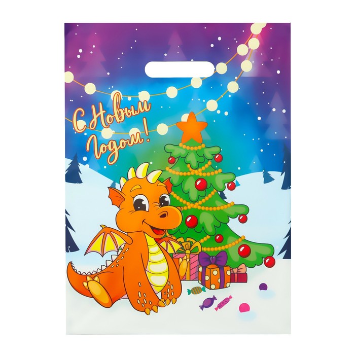 Пакет "С годом Дракончика", полиэтиленовый с вырубной ручкой, 30х40 см, 50 мкм