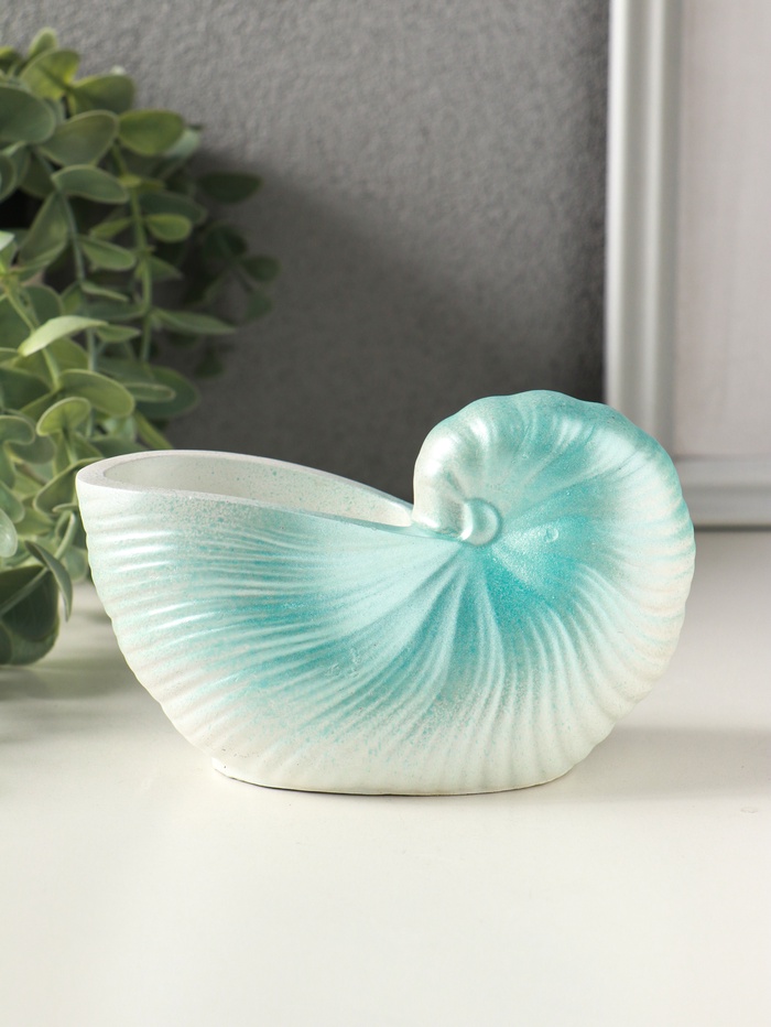 Эта голубая ракушка из гипса станет тем акцентом, которого не хватало на вашем столе. Она ловит свет перламутровым переливом, создавая ощущение, будто вы только что подобрали её на морском берегу. Идеальная форма для хранения колец, серёг или мелких памятных вещиц, которые так легко потерять.