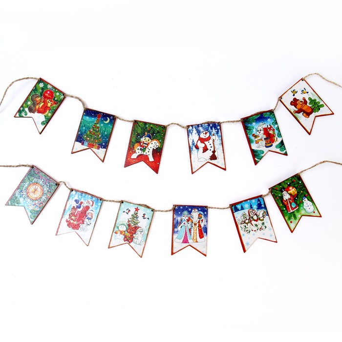 Набор «Новогодние флажки» состоит из 12 уникальных деталей, каждая из которых оформлена в стиле зимнего волшебства. Этот набор идеально подойдёт для создания праздничной атмосферы и украшения вашего дома или офиса. Все элементы выполнены из высококачественных материалов, что обеспечивает их долговечность и безопасность.