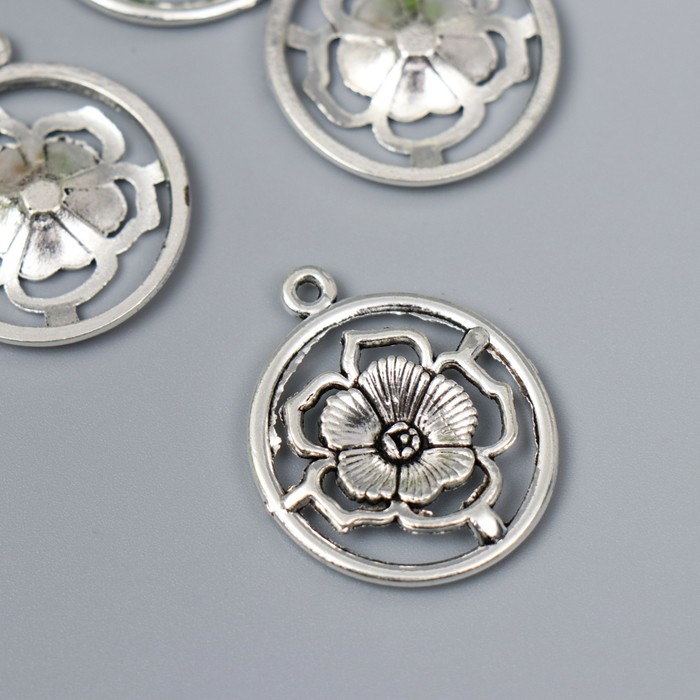 Декор для творчества металл "Незабудка в круге" серебро G322B482 3,3х2,7 см