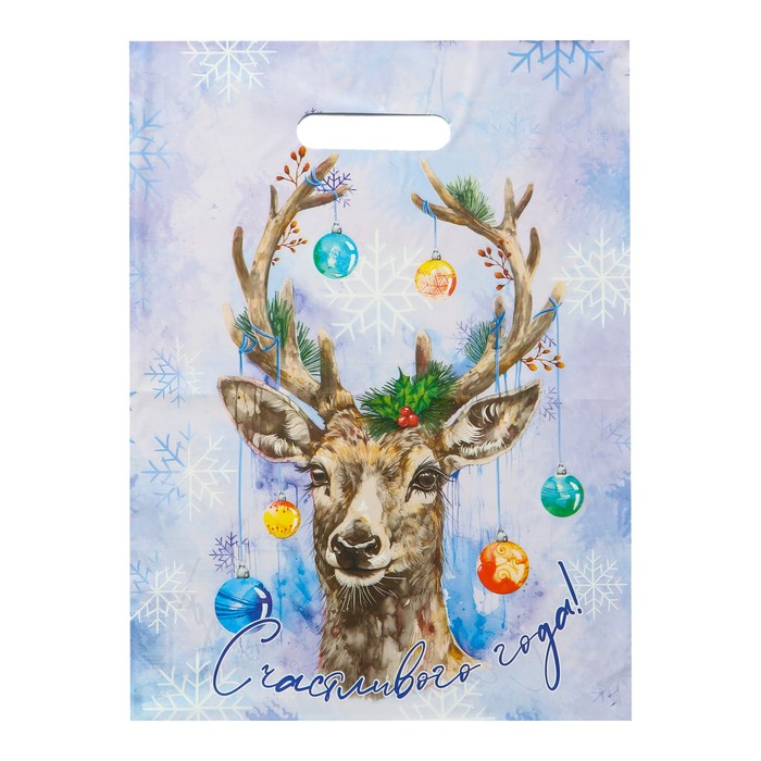 Пакет "С Новым годом", полиэтиленовый с вырубной ручкой, 30х40 см.