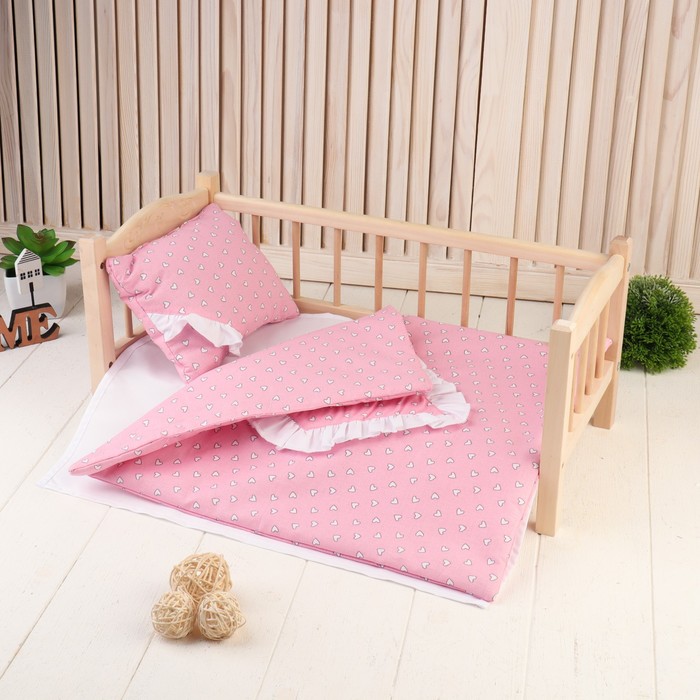 Постельное бельё для кукол «Сердечки на розовом», простынь, одеяло, подушка