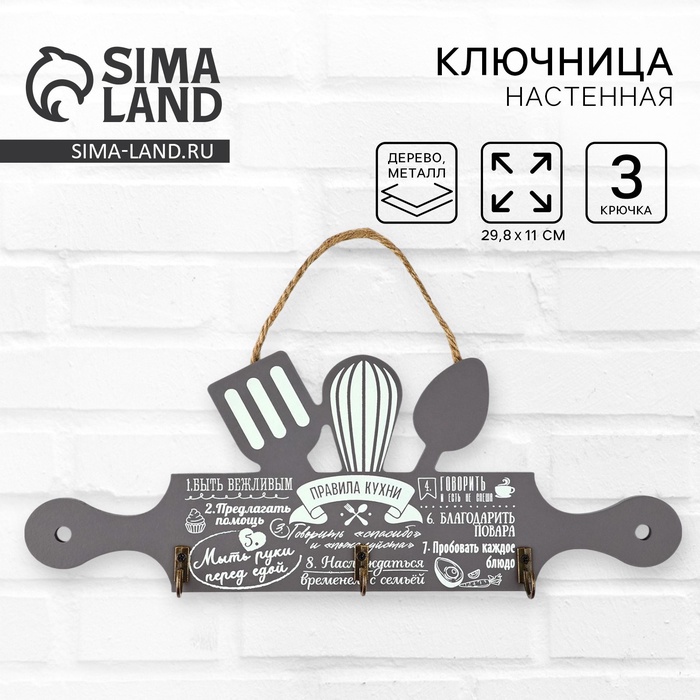 Ключница настенная кухонная «Правила кухни», 29.8×11 см - товар, который Вы можете приобрести в нашем интернет-магазине. Заказ могут оформить как юридические, так и физические лица. Бесплатная доставка по Астане, также, отправляем по РК.