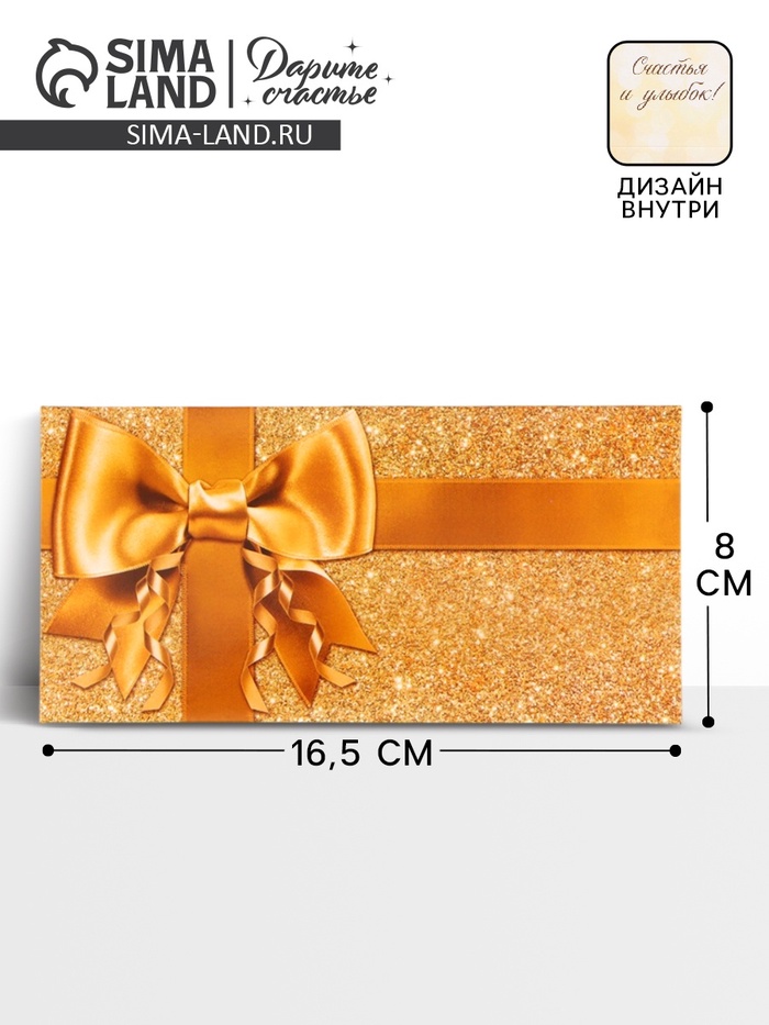 Конверт для денег «Золотой бант», двусторонний, 16.5×8 см - товар, который Вы можете приобрести в нашем интернет-магазине. Заказ могут оформить как юридические, так и физические лица. Бесплатная доставка по Астане, также, отправляем по РК.