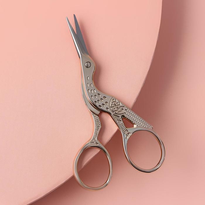 Стильные металлические ножницы с небольшими лезвиями помогут аккуратно обрезать нитки, края изделия и другие мелкие детали.