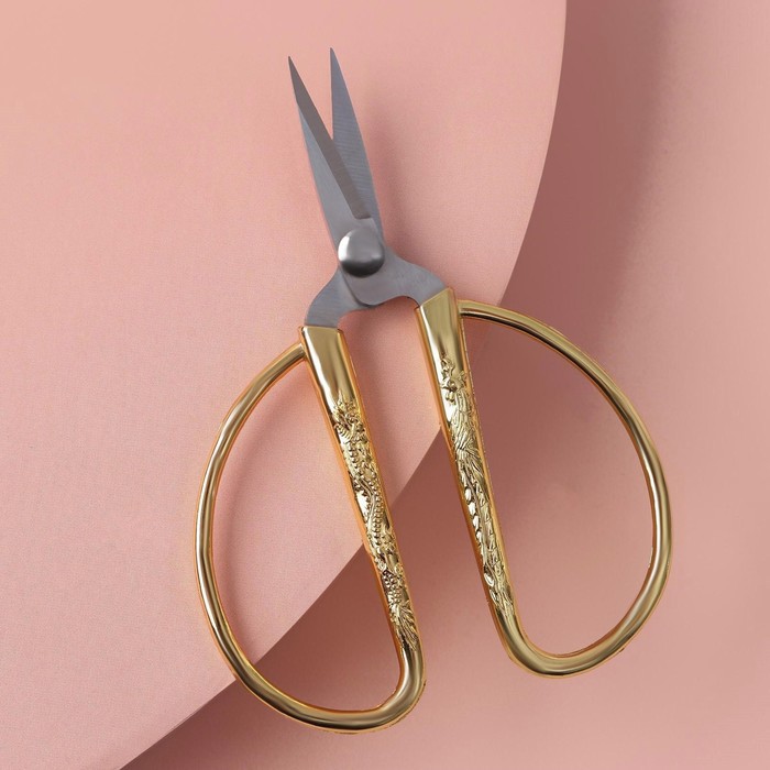 Стильные металлические ножницы с небольшими лезвиями помогут аккуратно обрезать нитки, края изделия и другие мелкие детали.