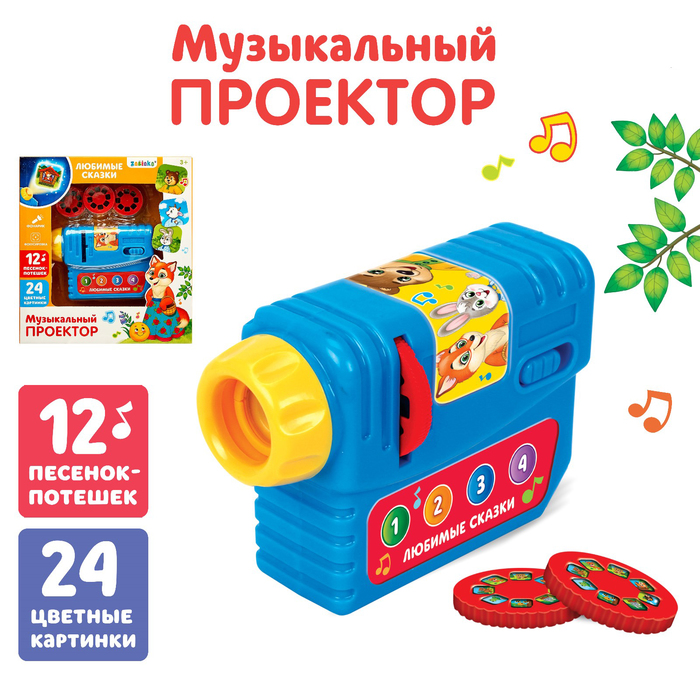 Проектор не только показывает изображения, но ещё и воспроизводит песенки-потешки по мотивам известных русских народных сказок! Встроенный фонарик позволяет использовать игрушку как ночник.