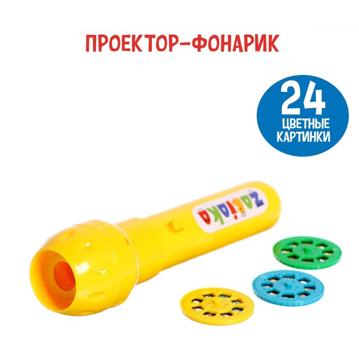 В набор входят: проектор-фонарик и 3 слайда (24 цветные картинки).