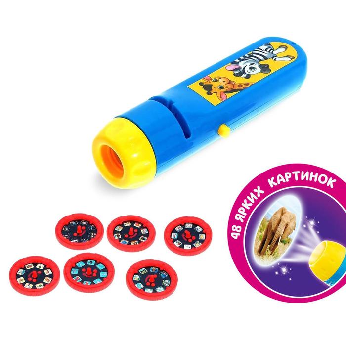 В набор входят: проектор-фонарик и 6 слайдов (48 цветных картинок).