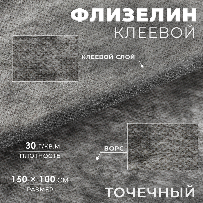 Флизелин клеевой, точечный, 30г/кв.м, 1,5 м × 1 м, цвет графит
