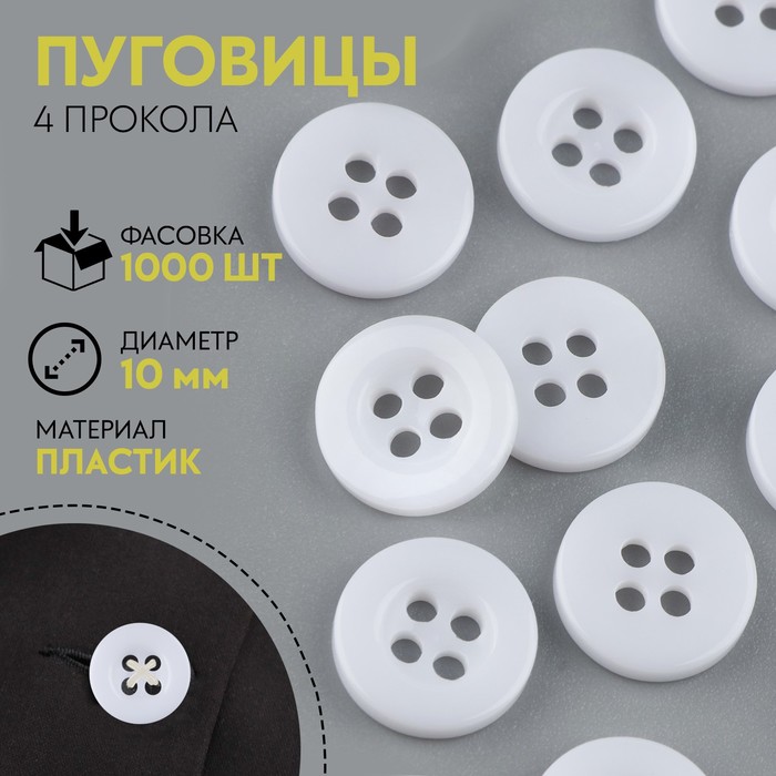 Пуговица 4 прокола, d = 10 мм, цвет белый, цена за 1 штуку - товар, который Вы можете приобрести в нашем интернет-магазине. Заказ могут оформить как юридические, так и физические лица. Бесплатная доставка по Астане, также, отправляем по РК.