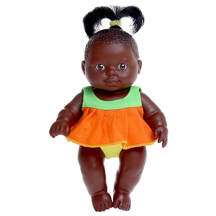 Кукла одета в платьице и трусики из бельевого трикотажа. В комплект одежды входит также трикотажная безрукавая футболка, штанишки и шапочка. Это позволит ребёнку разнообразить игровой процесс, развивая творческое воображение и мелкую моторику.