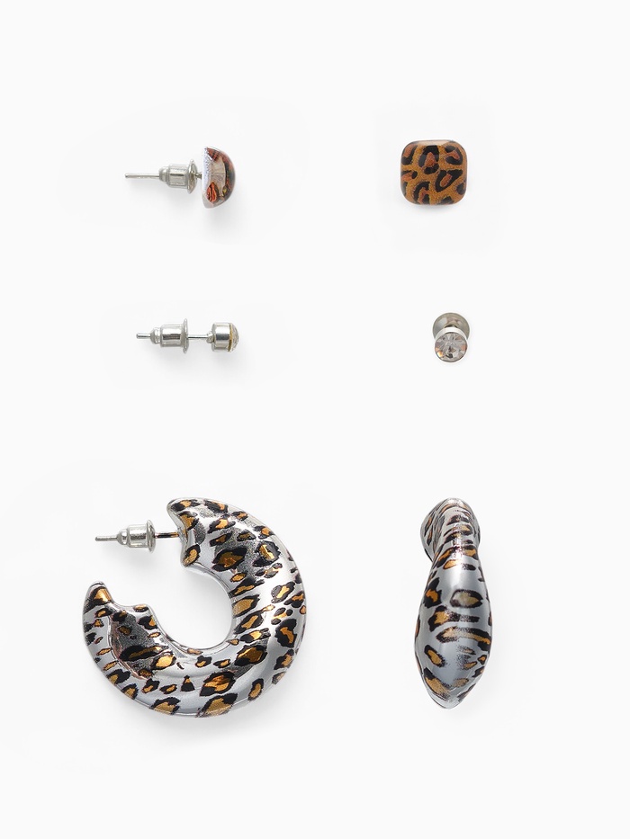 Этот комплект украшений с леопардовым принтом — выразительный акцент для тех, кто ценит стиль и оригинальность. В набор входят серьги-гвоздики с застёжкой пусет и кольцо, выполненные из лёгкого пластика с серебристым покрытием, что обеспечивает комфорт и практичность в повседневном использовании.