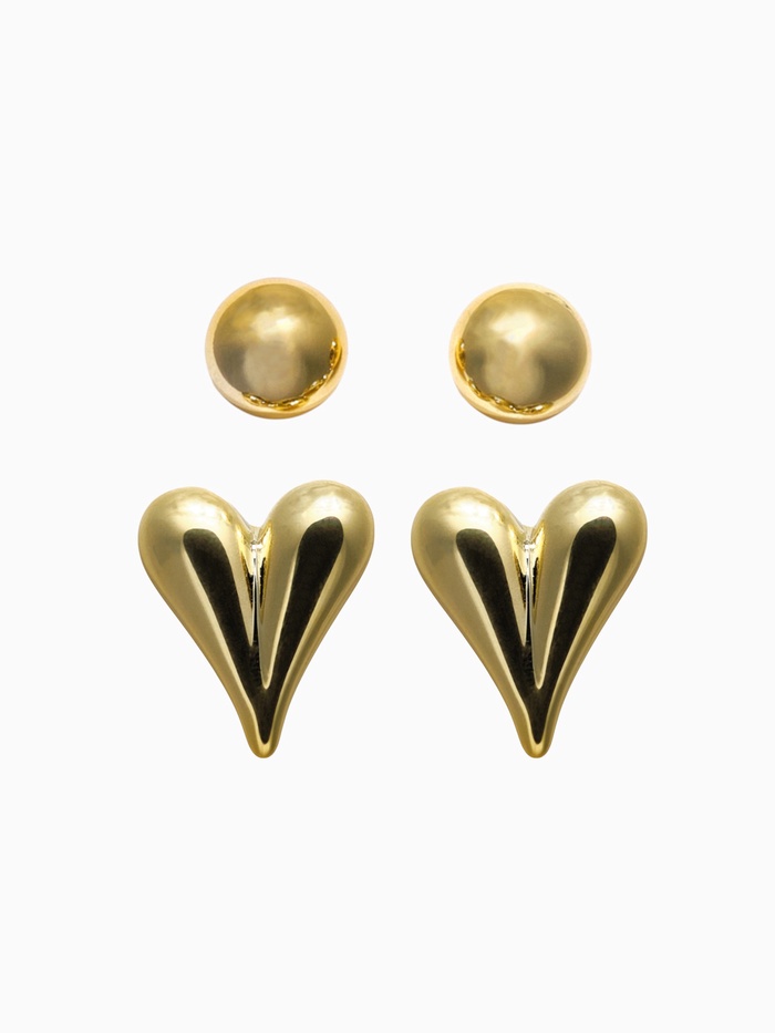 Откройте для себя очарование и изящество с набором серёжек, который станет настоящим акцентом в вашем образе. Эти украшения, выполненные в золотистом цвете, идеально сочетают в себе минимализм и романтику, благодаря своим оригинальным формам в виде сердца.