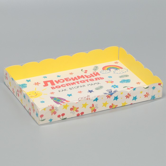 Коробка для печенья, кондитерская упаковка с PVC крышкой, «Любимый воспитатель», 22 х 15 х 3 см - товар, который Вы можете приобрести в нашем интернет-магазине. Заказ могут оформить как юридические, так и физические лица. Бесплатная доставка по Астане, также, отправляем по РК.
