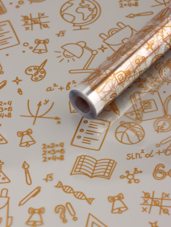 Добавьте букету торжественности и блеска! Пленка для цветов «Школьная пора» золотая — это нарядная упаковка для праздничных букетов. Прозрачная основа с золотым рисунком сочетается с цветами и создает эффект дорогого подарка.
