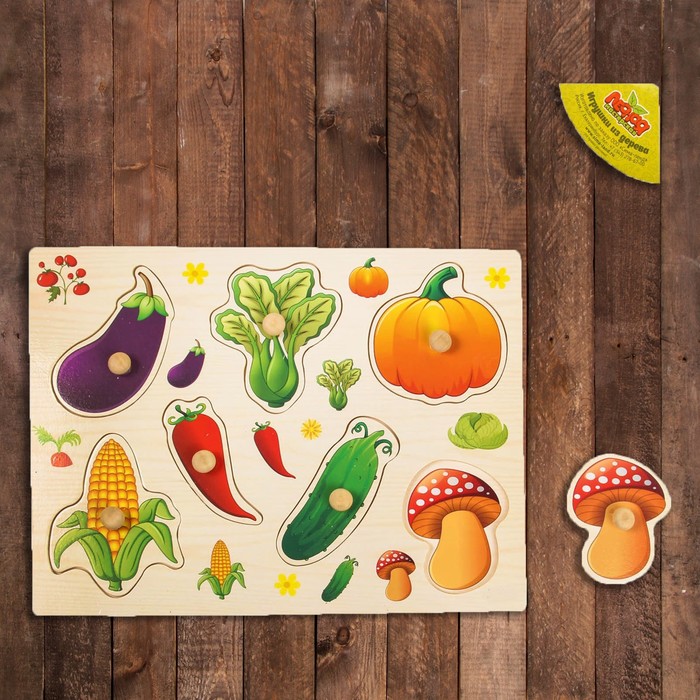 С помощью рамки-вкладыша ребёнок познакомится с овощами. Для большей продуктивности занимайтесь вместе с ребёнком и расскажите о том, какую пользу для организма приносят продукты.