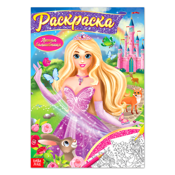 Раскраска «Волшебное королевство» — книга с контурными изображениями принцессы, замка, животных и других обитателей сказочного царства. Малышка сможет их раскрасить карандашами, красками или фломастерами. Страницы и обложка выполнены из бумаги.