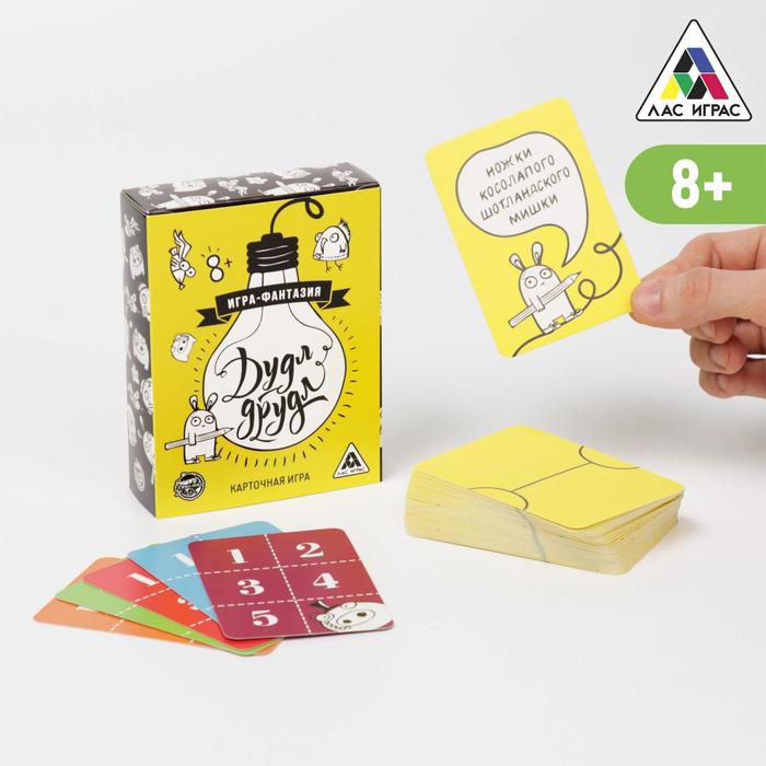 Вам нужно будет придумывать десятки разных ассоциаций, глядя на одну карточку. Вы только посмотрите на этот полукруг! Это дно летающей тарелки или половинка лимона? А может быть, это часть растаявшего снеговика или купол метеостанции? В других вариантах игры участники должны будут догадаться, к какой карте относится ваша ассоциация, или даже дорисовать друдлы, превратив их в целую историю!
