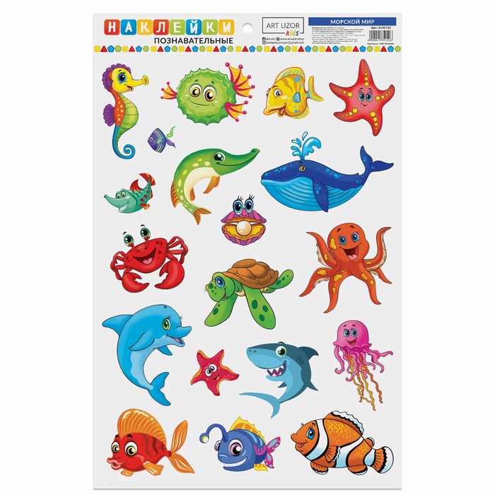 Развивающие наклейки для дома «Изучаем подводных обитателей», 24 × 37 см