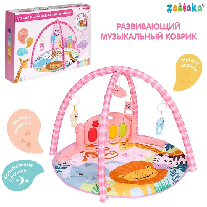 Яркий музыкальный коврик — это настоящий развивающий центр для малыша. Заниматься на нём можно уже начиная с рождения. С таким ковриком кроха быстрее научится держать головку и управлять телом, фокусировать взгляд на движущемся предмете и находить источник звука, а ещё потренирует тактильные навыки и мелкую моторику.