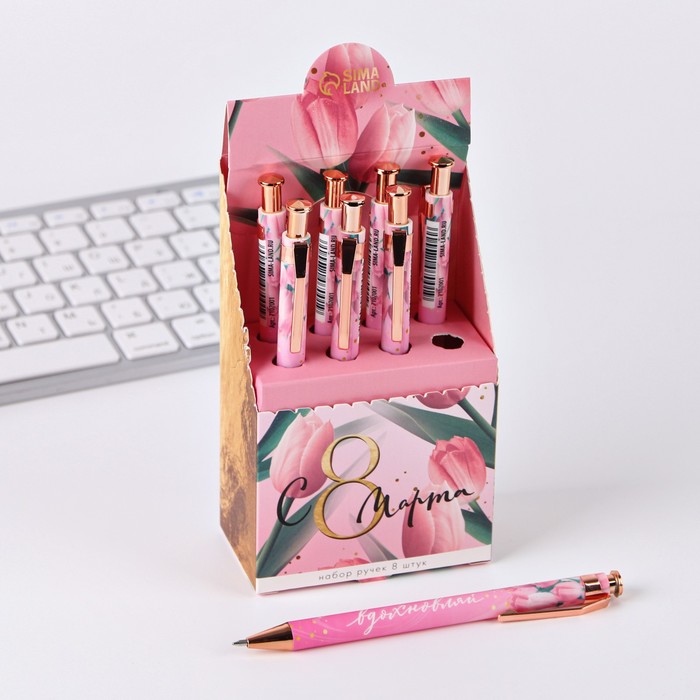Ручка шариковая, синяя паста, 0.5 мм, автоматическая мини «С 8 марта»