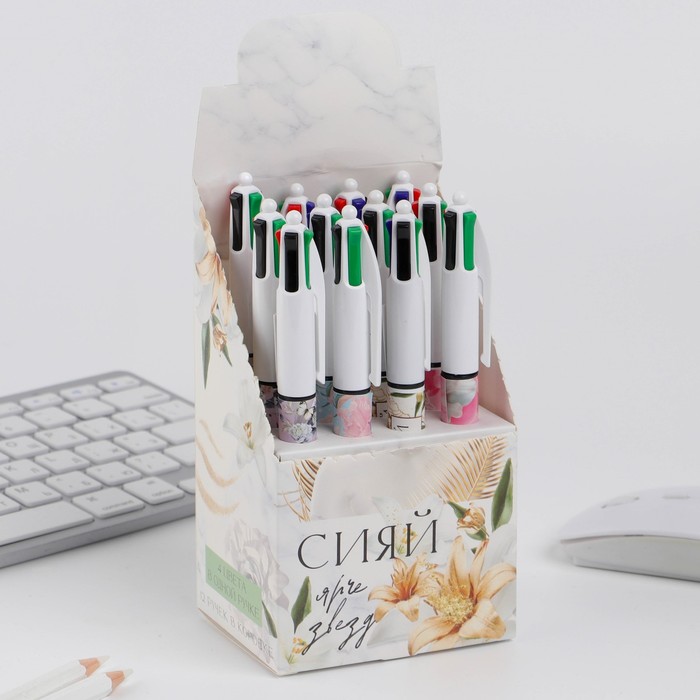 Ручка пластик «Сияй ярче звёзд», 4 цвета, микс