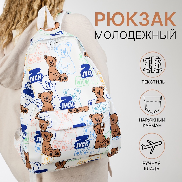 Рюкзак школьный на молнии, с карманами, с принтом, белый/синий - товар, который Вы можете приобрести в нашем интернет-магазине. Заказ могут оформить как юридические, так и физические лица. Бесплатная доставка по Астане, также, отправляем по РК.