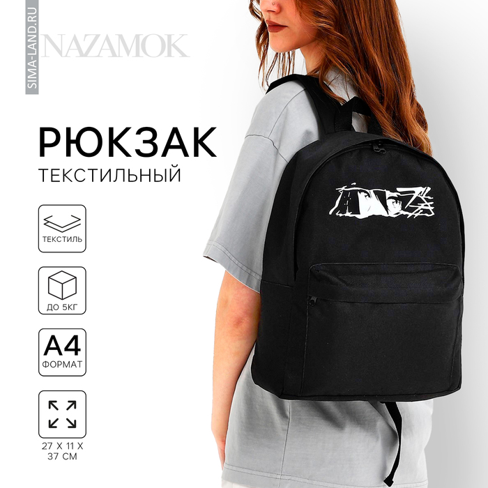 Рюкзак школьный текстильный «Аниме», с карманом, 27×11×37, чёрный - товар, который Вы можете приобрести в нашем интернет-магазине. Заказ могут оформить как юридические, так и физические лица. Бесплатная доставка по Астане, также, отправляем по РК.