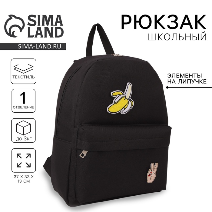 Рюкзак школьный текстильный «Банан», 37 х 33 х 13 см, с липучками, чёрный - товар, который Вы можете приобрести в нашем интернет-магазине. Заказ могут оформить как юридические, так и физические лица. Бесплатная доставка по Астане, также, отправляем по РК.