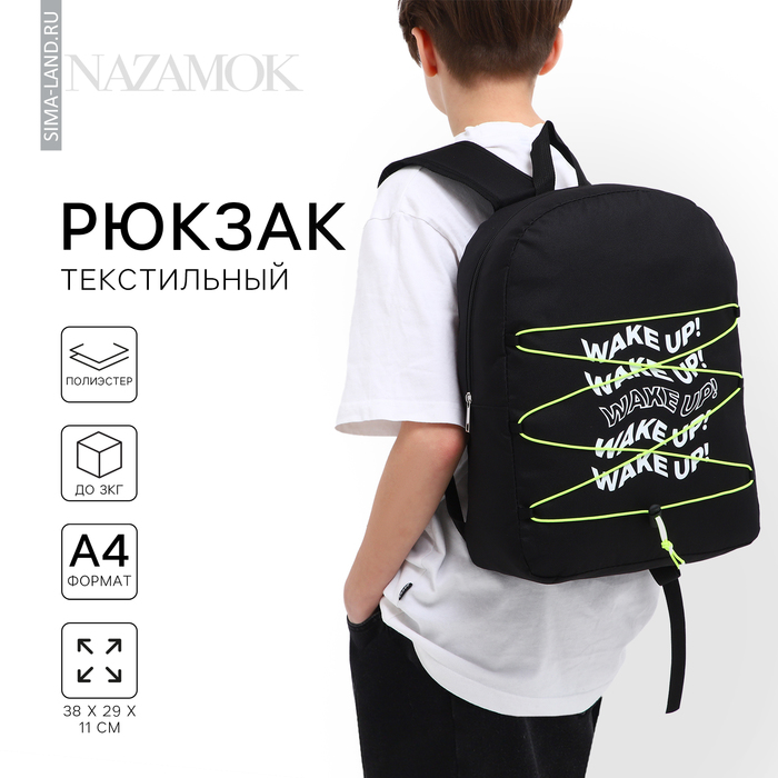 Рюкзак школьный текстильный со шнуровкой WAKE UP, 38×29×11 см, чёрный - товар, который Вы можете приобрести в нашем интернет-магазине. Заказ могут оформить как юридические, так и физические лица. Бесплатная доставка по Астане, также, отправляем по РК.