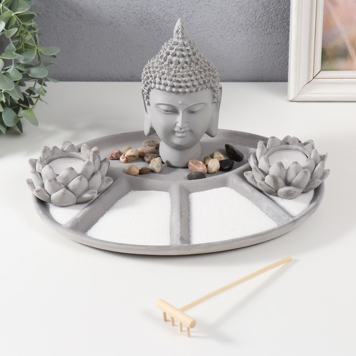 Этот мини-сад станет не только украшением вашего интерьера, но и источником вдохновения и внутренней силы. Позвольте серому цвету камней и плавным линиям песка погрузить вас в мир тишины и сосредоточенности. Всего несколько минут взаимодействия с этим произведением искусства помогут вам обрести душевное равновесие и зарядиться положительной энергией.