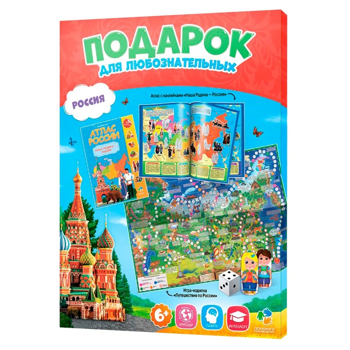Подарочный набор для любознательных «Россия»: атлас с наклейками, игра-ходилка