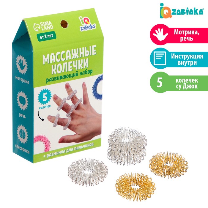 Развивающий набор «Массажные колечки» научит малыша концентрироваться на задании и поможет активизировать речевые центры.