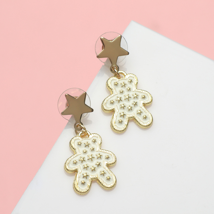 Добавьте игривости в свой стиль! Серьги с эмалью в форме мишек и звёздочек – это милый аксессуар, который придаст вашему образу нежности и оригинальности. Белый цвет в сочетании с золотой фурнитурой делает их универсальными для любого мероприятия.