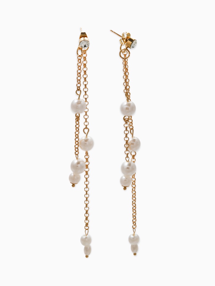 Откройте для себя магию вечерних прогулок вдоль побережья с сережками-подвесочками, плавно стекающими длинными линиями, подобно каплям росы на рассвете. Дизайн украшений основан на белом жемчуге и золотистом металлическом оформлении, объединяющих романтику океана и очарование классического стиля.
