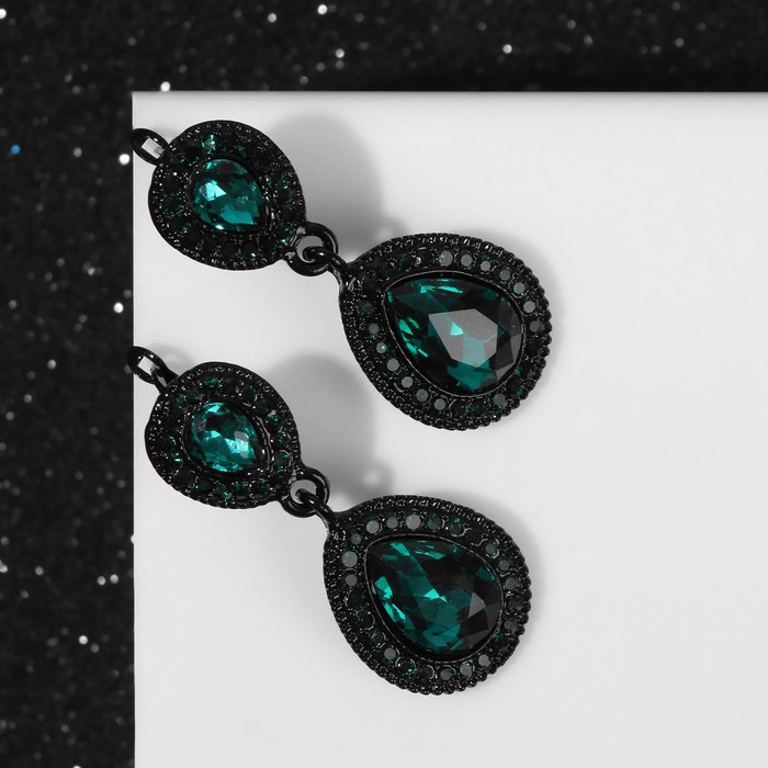 Серьги висячие со стразами «Вечерние» дама, цвет изумрудный в чёрном металле - товар, который Вы можете приобрести в нашем интернет-магазине. Заказ могут оформить как юридические, так и физические лица. Бесплатная доставка по Астане, также, отправляем по РК.