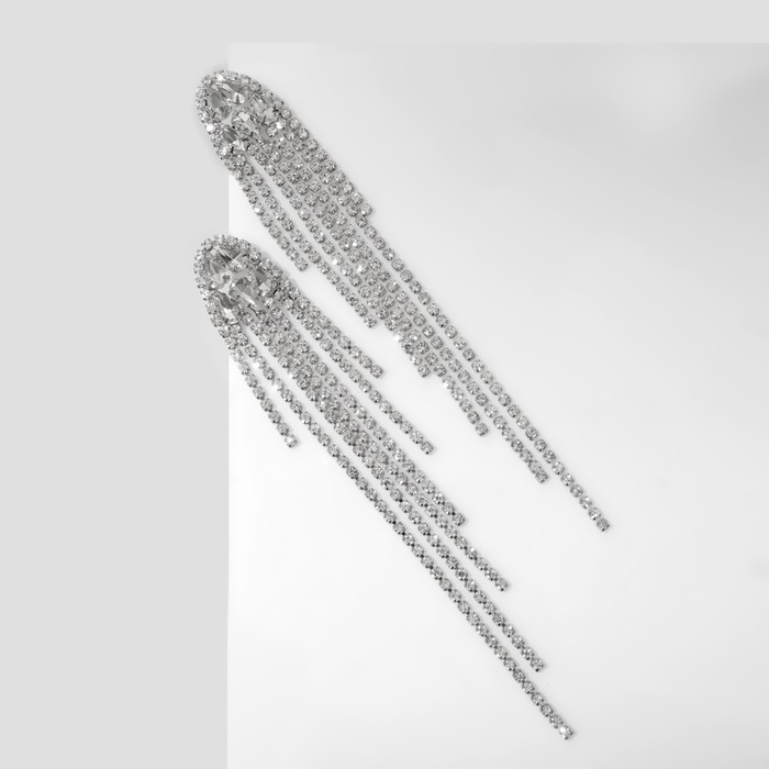 Серьги висячие со стразами «Голливуд» нити на кристаллах, цвет белый в серебре, 15 см - товар, который Вы можете приобрести в нашем интернет-магазине. Заказ могут оформить как юридические, так и физические лица. Бесплатная доставка по Астане, также, отправляем по РК.