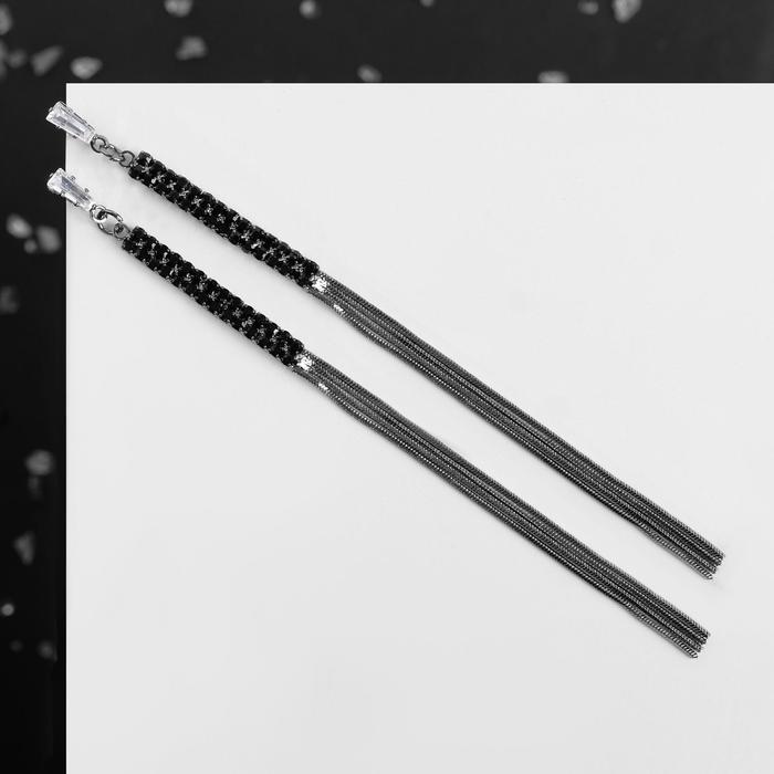 Серьги висячие со стразами «Капель» блеск, цвет бело-чёрный в сером металле, 11 см