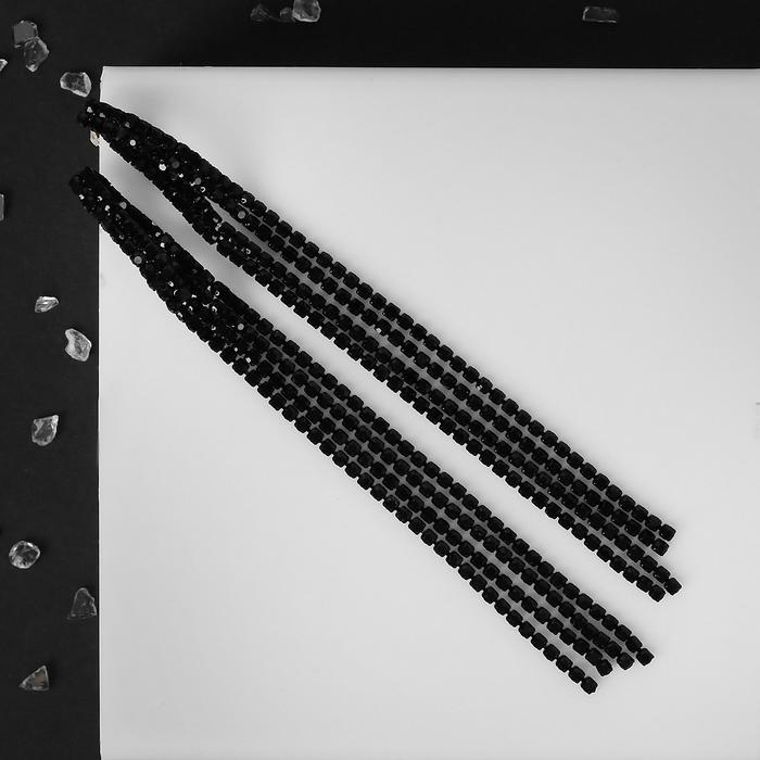 Серьги висячие со стразами «Лёд» 4 нити, цвет чёрный, 11,5 см