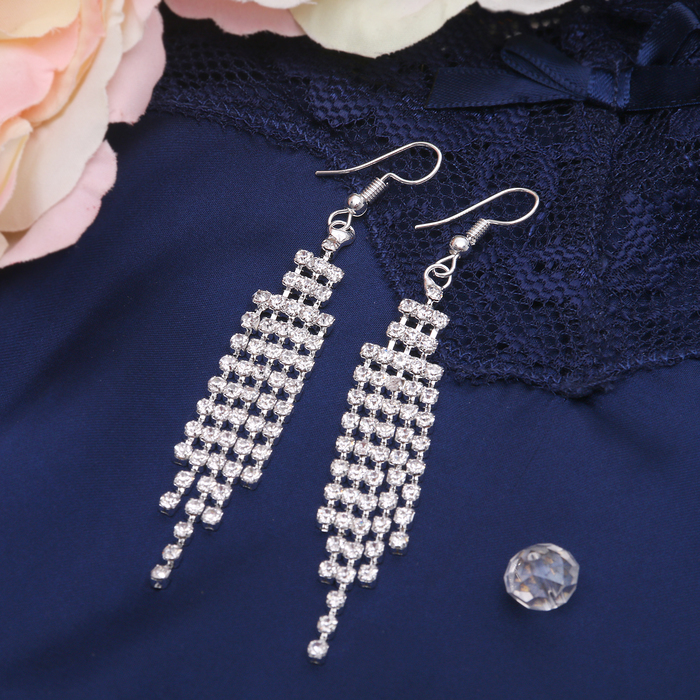 Серьги висячие со стразами Princess водопад, цвет белый в серебре, 8,5 см - товар, который Вы можете приобрести в нашем интернет-магазине. Заказ могут оформить как юридические, так и физические лица. Бесплатная доставка по Астане, также, отправляем по РК.