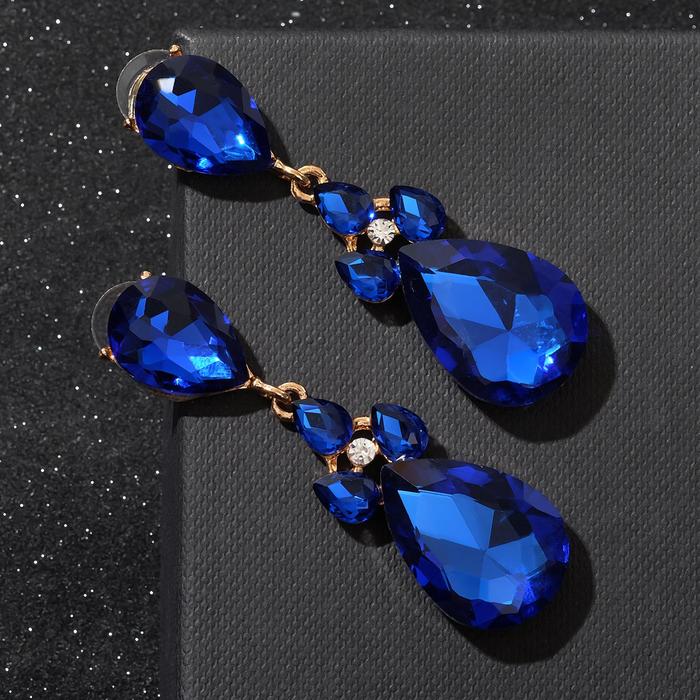 Серьги висячие со стразами «Вечеринка» цветок из капель, цвет сине-белый в золоте, 6,3 см