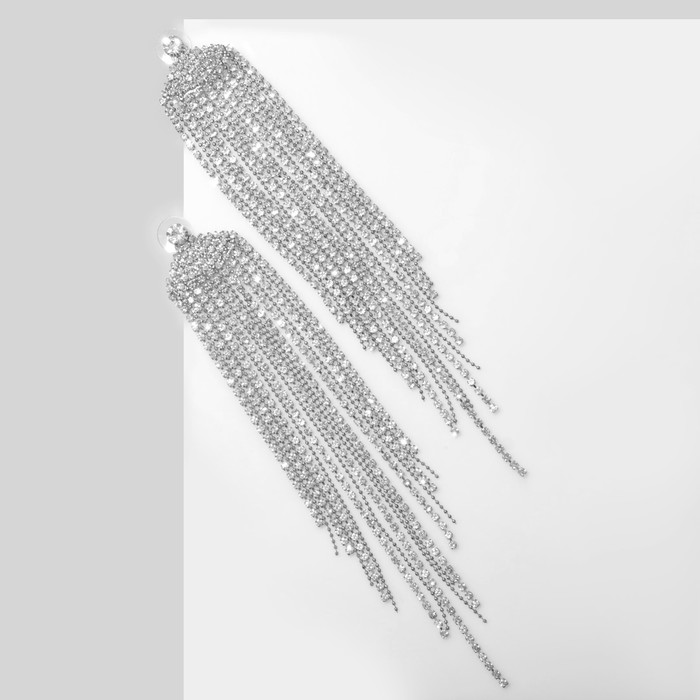 Серьги висячие со стразами «Водопад» веер, цвет белый в серебре, 15,5 см - товар, который Вы можете приобрести в нашем интернет-магазине. Заказ могут оформить как юридические, так и физические лица. Бесплатная доставка по Астане, также, отправляем по РК.