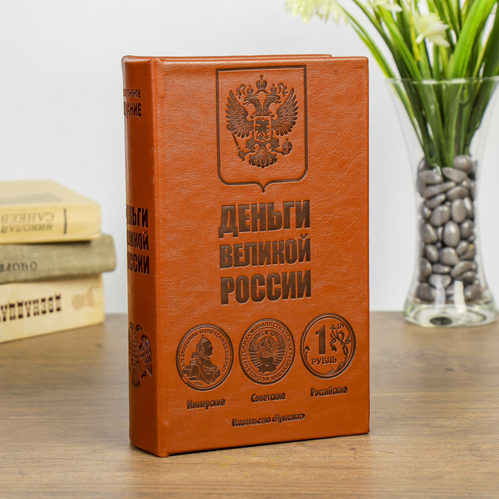 Сейф дерево книга Деньги великой России 21*13*5 см — оригинальное хранилище для самых разных предметов, которое не так-то просто обнаружить! На вид такой предмет очень похож на обычную книгу и, находясь на книжной полке, не выделяется своим внешним видом из ряда настоящих томов и томиков. Однако на самом деле – это настоящий небольшой сейф, запирающийся на ключ и укрывающий от посторонних глаз то, что вам захочется туда спрятать.