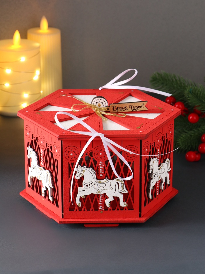Позвольте себе перенестись в мир беззаботного праздника, где даже самые обычные вещи превращаются в источник радости и волшебства. Эта шкатулка, выполненная в форме нарядной карусели, словно сошедшей с рождественской ярмарки, станет не просто хранилищем для ценностей, а настоящим центром притяжения взглядов и положительных эмоций. Её замысловатая фигурная форма и насыщенный красный цвет мгновенно создают в помещении атмосферу торжества и веселья.